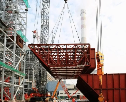 2022年1月14日上午9時,樂電三期工程5號鍋爐省煤器灰斗吊裝正式開始。首先對5號鍋爐省煤器灰斗右側部分進行吊裝,其次完成省煤器灰斗左側部分吊裝和安裝、加固工作。